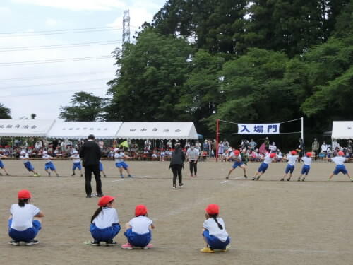 「熱い声援!! 仲間と共に 笑顔を咲かせ!!」のスローガンのもと,子どもたち一人ひとり元気に最後まで演技を行いました。