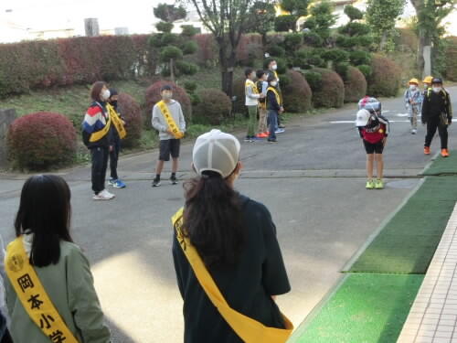 岡本小では,先生方が登校指導と合わせて,あいさつ運動を行いました。