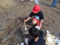 3年生が3・4時間に,社会科の「道具とくらしのうつりかわり」の授業で,七輪を使って「おもち焼き」の体験をしました。まず,炭をおこす作業でしたが,なかなか炭に火がつきません。友達と協力しながら,苦労してやっと火をつけて,網でおもちを焼きました。焼いたおもちを醤油で,いただきましたが,「おいしい」「もう一個食べたい」などの声が上がっていました。
