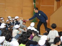 10月下旬に避難訓練を行いました。宇都宮中央警察署スクールサポーターの方を講師に招いて,生命を安全に守ることの大切さを教えていただきました。