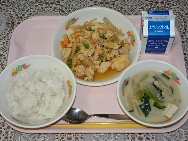 一覧へ 今日の給食 日時 2026年03月10日(火) 公開対象 パブリック 詳細 セルフ親子丼(麦入りごはん) 牛乳 まろやか味噌汁 作成者 桜小学校管理者 更新日時 2026-03-10 12:36:48