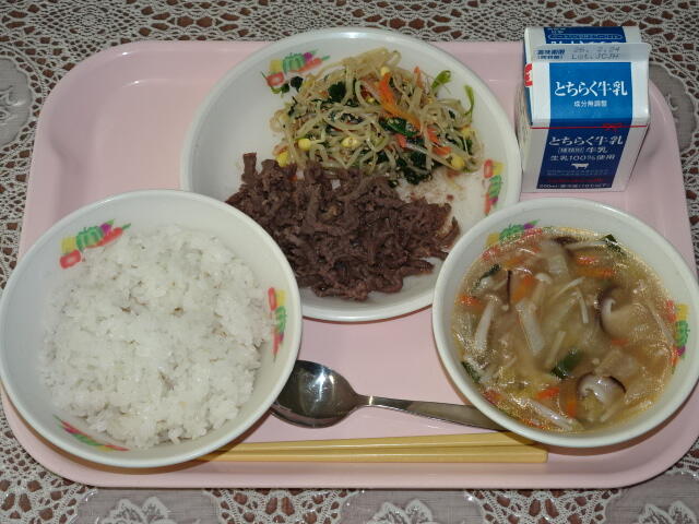 一覧へ 今日の給食 日時 2026年02月10日(火) 公開対象 パブリック 詳細 セルフビビンバ丼(麦入りごはん) 牛乳 担々春雨スープ 作成者 桜小学校管理者 更新日時 2026-02-10 11:59:44