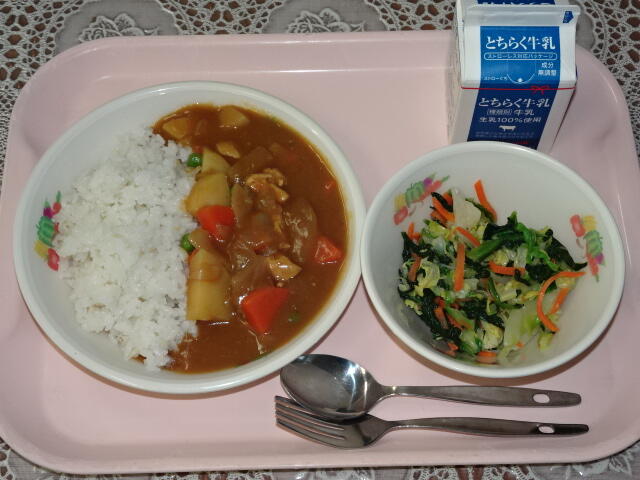 麦入りごはん 牛乳 チキンカレー ゆで野菜