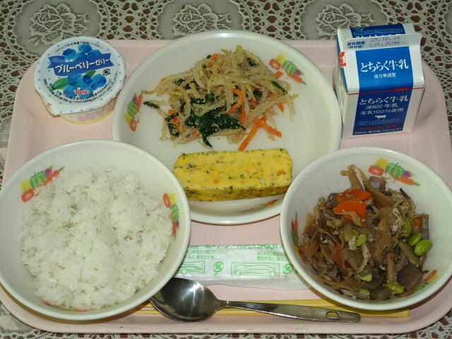 一覧へ 今日の給食「目の愛護デー」 日時 2025年10月10日(金) 公開対象 パブリック 詳細 今日は10月10日,「目の愛護デー」です。ブルーベリーゼリーが提供されます。 セルフまいたけごはん(麦入りごはん) 牛乳 彩り野菜のたまご焼き もやしとにらのごまあえ ブルーベリーゼリー 作成者 桜小学校管理者 更新日時 2025-10-10 12:04:52