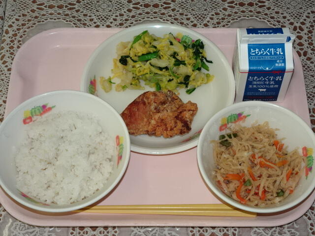 一覧へ 今日の給食 日時 2026年03月24日(火) 公開対象 パブリック 詳細 麦入りごはん 牛乳 鶏肉のから揚げ おひたし 豚肉と切り干し大根のいためもの 作成者 桜小学校管理者 更新日時 2026-03-24 11:58:28