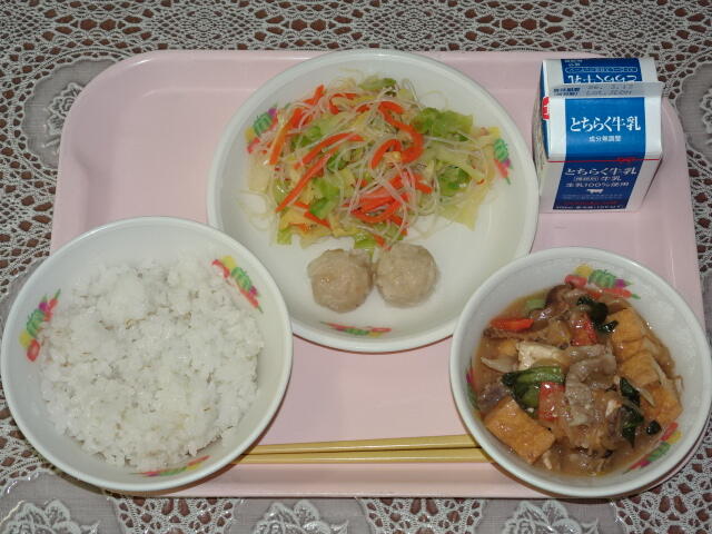 一覧へ 今日の給食 日時 2026年02月27日(金) 公開対象 パブリック 詳細 麦入りごはん 牛乳 エビシューマイ バンサンスー チャ―シャン豆腐 作成者 桜小学校管理者 更新日時 2026-02-27 11:34:25