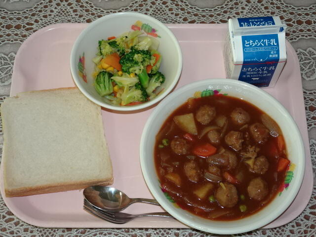 一覧へ 今日の給食 日時 2026年01月28日(水) 公開対象 パブリック 詳細 食パン 牛乳 ハンガリアンシチュー ゆで野菜 作成者 桜小学校管理者 更新日時 2026-01-28 12:01:33