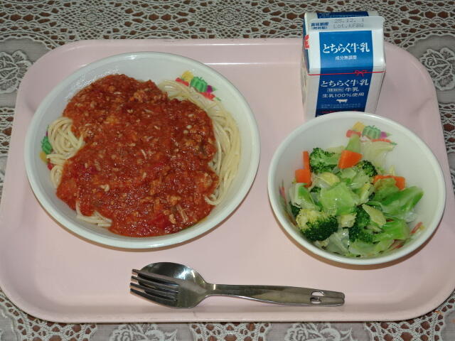 一覧へ 今日の給食 日時 2025年11月17日(月) 公開対象 パブリック 詳細 スパゲティ 牛乳 秋の香りのミートソース ゆで野菜 手作りフレンチドレッシング 作成者 桜小学校管理者 更新日時 2025-11-17 11:50:54