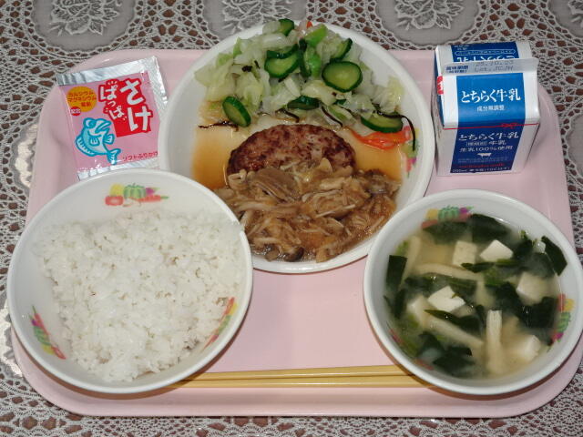 一覧へ 今日の給食 日時 2025年10月09日(木) 公開対象 パブリック 詳細 麦入りごはん 牛乳 ハンバーグ 和風きのこソース 塩こんぶあえ みそ汁 さけぱっぱ 作成者 桜小学校管理者 更新日時 2025-10-09 11:39:34