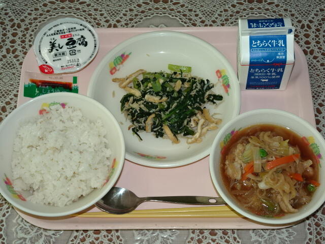 一覧へ 今日の給食 日時 2025年09月30日(火) 公開対象 パブリック 詳細 セルフ豚丼(麦入りごはん) 牛乳 冷やっこ 小松菜とじゃこのいためもの 作成者 桜小学校管理者 更新日時 2025-09-30 11:42:25