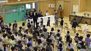 最後は花のアーチで職員を歓送しました。子どもたちは感謝と別れを惜しむ気持ちを、立派な態度で表していました。