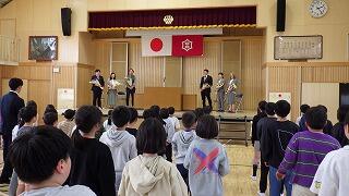 朝の時間を活用し,2学年ずつ音楽の発表を行っています。