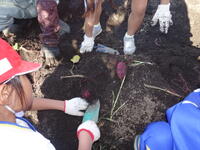 1~4年生は,6月に植えたサツマイモの収穫を行いました。今年は豊作だったかな?
