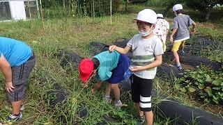 グループに分かれて,収穫しました。