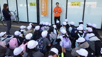 子どもたちは,目の前で行われる実験を見て,「内輪差」や「死角」の危険性や,「合図」の重要性,「飛び出し」の危険性などを体感することができ,交通安全への意識を高めることができました。