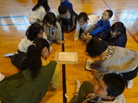 1年生は保育園の年長さんと交流の会を行いました。学校生活クイズを出題したり,昔遊びで交流したりするなかで,自分たちの成長した姿を見せることができました。