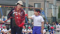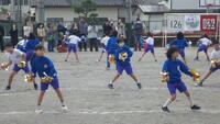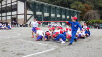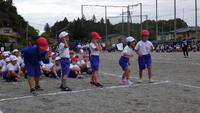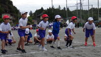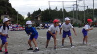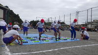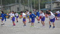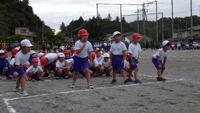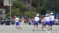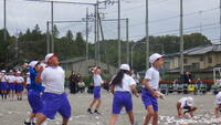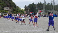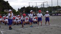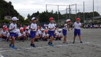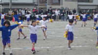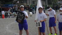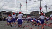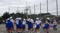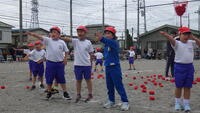 一世風靡セピアの「前略道の上より」の「ソイヤ―」の掛け声に合わせて踊り,歌の時に玉を入れる玉入れ。ソイヤ―の掛け声でポーズを決める1.2年生の姿はなんとも微笑ましかったです。