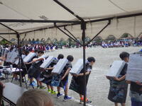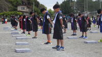 入場には第3校歌「石山の歌」が使われ,全員が大谷石をかついで入場します。