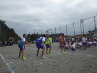 この後のリレーに出る児童以外,全員が参加した玉入れです。