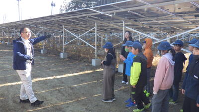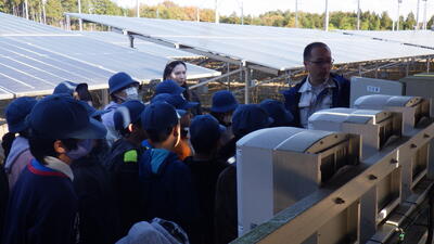 学校に隣接する太陽光発電所「宇都宮シナネンソーラーパーク」の社員の方を講師に迎え,