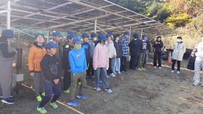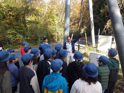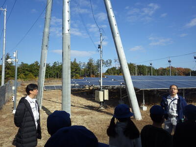 そのあと学校の裏手にある太陽光パネルや送電機器を見学しました。