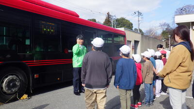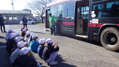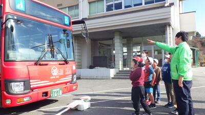 目の前の路線バスに,子どもたちのワクワクも高まっている様子です。