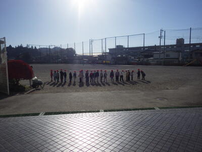 校庭に並んで,さあ出発です。