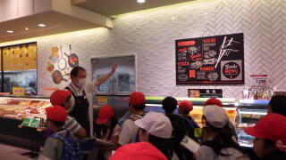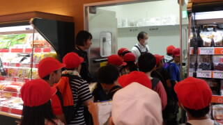 スーパーの売り場の秘密や仕事の工夫について、話を聞いたり、バックヤードを見せていただいたりしました。
