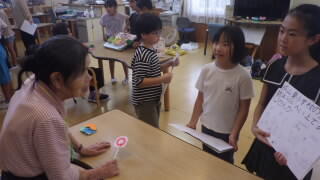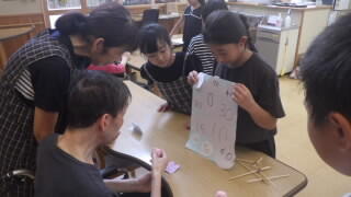 4年生は総合的な学習で福祉の勉強をしており、高齢者の方々がどうしたら楽しんでもらえるかを考え