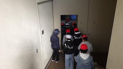 避難の訓練をした後は、煙道訓練と消火訓練を体験しました。