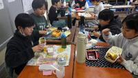 12月3日(水)はお弁当の日でした。子供たちは、「〇〇弁当をつくったよ」「早く食べたいな」ととても楽しそうでした。インフルエンザも収まってきたので、グループになって会食しながらお弁当を食べました。