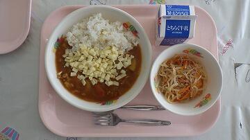 給食総選挙第1位 チーズカレー・華風サラダ 東京渋谷区交流献立 元気モリモリ丼