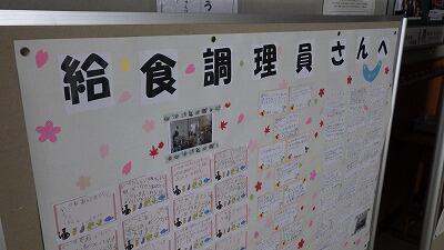 また、給食調理員さんへのメッセージを全児童が書き、昇降口前に掲示して感謝の気持ちを伝えました。