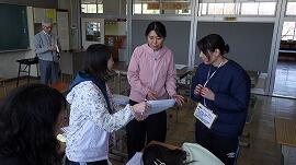 ジャンプ学級の6年生3人の卒業をお祝いして、1年生と4年生の児童がプレゼントを作って手渡しました。