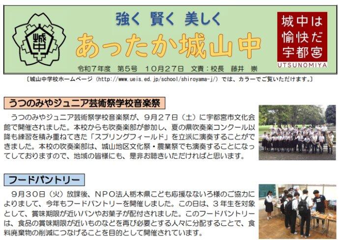 ようこそ 宇都宮市立城山中学校ホームページへ! Welcome to the Shiroyama Junior High School! ----------------------------------- 保護者と相談して、登録してください。 https://line.me/R/ti/p/@298kcqst