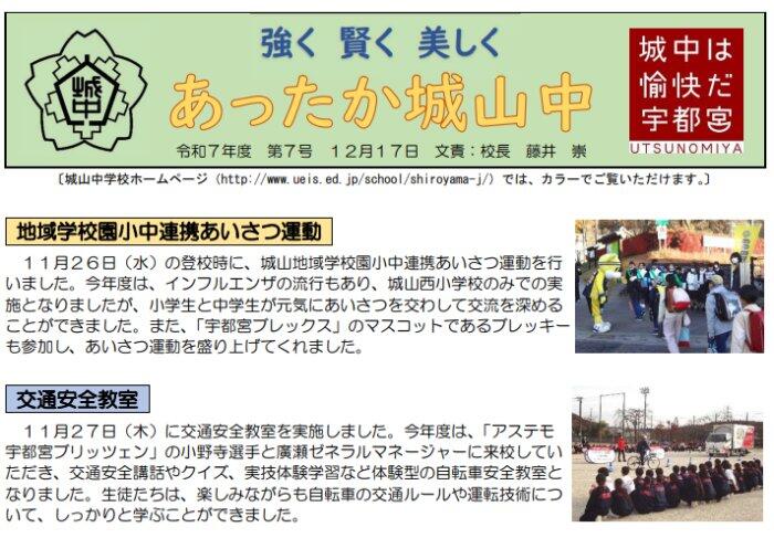 日々の様子 全ての記事 全ての記事 カテゴリ 今日の出来事 連絡事項 報告事項 アーカイブ 2025年12月 (23) 2025年11月 (27) 2025年10月 (18) 2025年9月 (28) 2025年8月 (7) 2025年7月 (26) 2025年6月 (37) 2025年5月 (19) 2025年4月 (22) 2025年3月 (28) 2025年2月 (32) 2025年1月 (26) 2024年12月 (30) 2024年11月 (39) 2024年10月 (30) 2024年9月 (35) 2024年8月 (8) 2024年7月 (29) 2024年6月 (31) 2024年5月 (31) 2024年4月 (19) 2024年3月 (19) 2024年2月 (35) 2024年1月 (15) 2023年12月 (19) 2023年11月 (19) 2023年10月 (26) 2023年9月 (19) 2023年8月 (5) 2023年7月 (15) 2023年6月 (29) 2023年5月 (22) 2023年4月 (10) 2023年3月 (9) 2023年2月 (16) 2023年1月 (9) 2022年12月 (5) 2022年11月 (19) 2022年10月 (8) 2022年9月 (13) 2022年8月 (14) 2022年7月 (21) 2022年6月 (10) 2022年5月 (5) 2022年4月 (5) 2022年3月 (4) 2022年2月 (6) 2022年1月 (2) 2021年12月 (4) 2021年11月 (12) 2021年10月 (5) 2021年9月 (1) 2021年8月 (2) 2021年7月 (4) 2021年6月 (8) 2021年5月 (3) 2021年4月 (8) 2021年3月 (14) 2021年2月 (10) 2021年1月 (8) 2020年12月 (6) 2020年11月 (5) 2020年10月 (2) 2020年9月 (8) 2020年8月 (4) 2020年7月 (6) 2020年6月 (5) 2020年5月 (4) 2020年4月 (8) 2020年3月 (5) 2020年2月 (2) 2020年1月 (2) 2019年12月 (1) 2019年11月 (0) 2019年10月 (4) 2019年9月 (2) 2019年8月 (0) 2019年7月 (2) 5件 1件 5件 10件 20件 50件 100件 「校長だより」第7号を掲載しました 投稿日時 : 7:30 城山中学校管理者 R7校長だより第7号.pdf {{options.likeCount}} {{options.likeCount}} 日本遺産の大谷は英語で 投稿日時 : 12/22 城山中学校管理者 {{options.likeCount}} {{options.likeCount}} サトウスポーツ杯優勝 男子ソフトテニス部 投稿日時 : 12/22 城山中学校管理者 〇地区新人大会優勝校、準優勝校を破って、見事「優勝」しました! {{options.likeCount}} {{options.likeCount}} 城山中学校美術館?博物館?植物園かな 投稿日時 : 12/19 城山中学校管理者 {{options.likeCount}} {{options.likeCount}} 2年生「大谷石加工体験」を実施しました 投稿日時 : 12/19 城山中学校管理者 {{options.likeCount}} {{options.likeCount}} 123456789 »