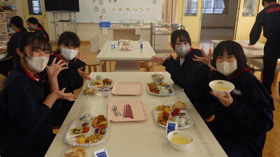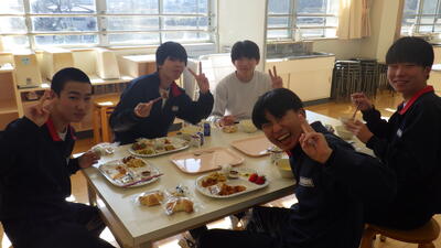 仲間と机を囲み、笑顔で食事を楽しむ時間は、卒業を控えた3年生にとってかけがえのない思い出になったようです。 朝早くから準備をしてくださった調理員の皆様、ありがとうございました。