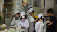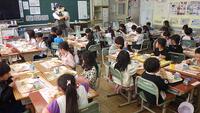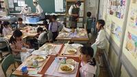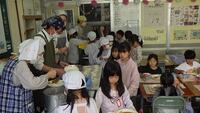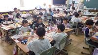 「いただきます」の後は,おいしそうに食べながら,先生の説明にもしっかりと耳を傾けていました。