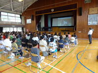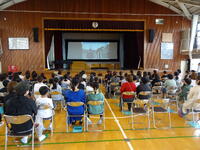 3校時に体育館で5年生が保護者と一緒に「スマホ・ケータイ出前講座」に参加しました。