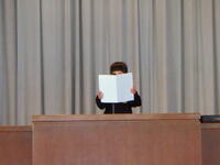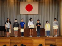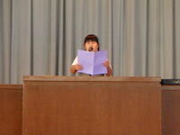式の前に1学期に頑張った各委員会の代表児童の表彰を行い,式では1年生と3年生の「児童代表のことば」の発表がありました。