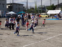 未就学児の「かけっこ」や中学生以上による「綱引き」,小学生と中学生以上による「満水競争」など楽しい種目で会場が盛り上がりました。