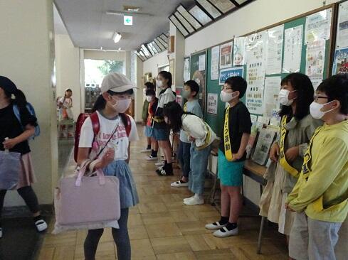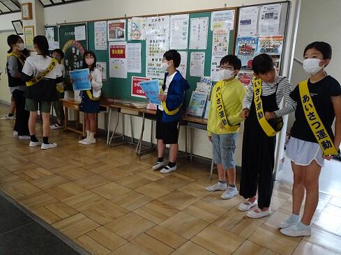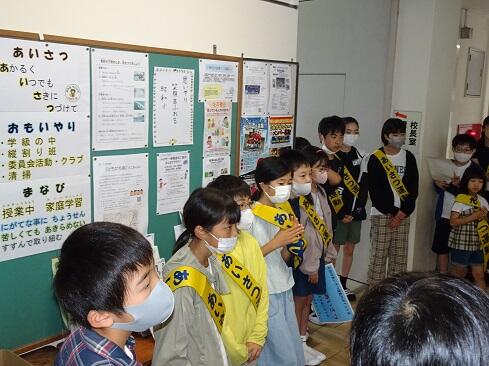 7月10日(月),毎週月曜日は,児童会計画委員会と昭和小あいさつ隊による「さわやかあいさつデー」です。今回は,計画委員会主催の「あいさつチャンピオン」の第2週目になります。具体的には計画委員会か週間めあてを設定し,それに対して各自が振り返ります。頑張った児童には,児童会からチャンピオンシールが贈られます。第2週のめあては「笑顔で明るいあいさつをしよう」です。計画委員会の皆さん,素晴らしい企画をありがとうございます。にこにこあいさつ団も,今日は「昭和小あいさつ隊」として,朝をさわやかにしてくれました。~あいさつ1つで 笑顔が2つ~