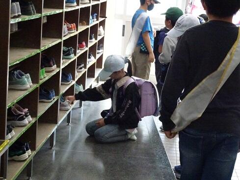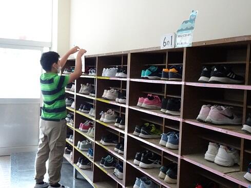 6月21日(水),毎週水曜日は,児童会 保健・環境委員会のくつそろえ隊活動日です。今日は,朝の声掛けの様子ではなく,くつそろえの状況のお昼の報告について御案内します。「くつそろえ隊の他に,学年によってはくつそろえボランティアが活動していた」ということで,全体に紹介がありました。また,「全体としてきれいに揃えられていてすばらしい」という前向きな内容がアナウンスされました。さて,課題としては,くつが真ん中の印に揃わないという課題があるそうです。そこで,解決策を聞いてみたところ「丁寧に声をかける」ことを実施していきたいとのことでした。課題を把握し,解決案も考えいて,頼りになる隊員たちです。