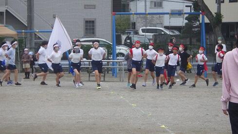 11月18日(金),12月に延期とした,八幡山公園を活用した,恒例の山野横断持久走大会の練習がスタートしました。業間の時間に6分間走を実施します。密防止のため今回は,2,3,6年生が練習しました。さて,今年度の大会に向けて,練習スタイルを2点加えました。具体的には,①すでに学校から御案内しました「走路の部分試走を2回分実施します。」,②「6分間走の周回記録を,初回と最終回の2回取り,各自が持久力の伸びを実感してから本番に臨みます。」です。これらは,子供たちの安全確保,ベストコンディションの確保,本番に自己ベストをめざす等の目的があります。練習の6分間を同じ速さを維持して走り続けるというのは,自分との対話の時間にもなります。