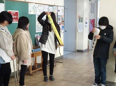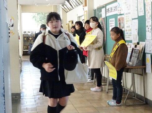 代表委員の子どもたちは,毎回テーマを決めて「あいさつ運動」に取り組んでいます。