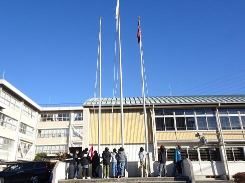 担当になった班は,ランドセルを体育館通路に置いて,昇降口前に並んで「あいさつ運動」に参加します。(雨天時は中止です。)