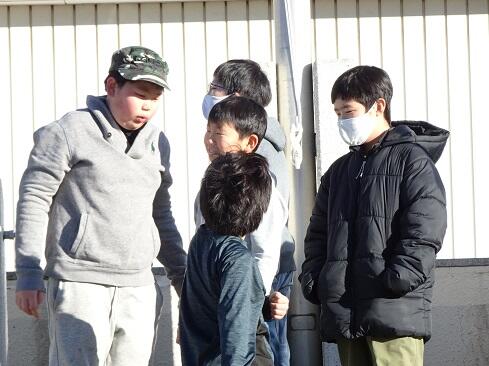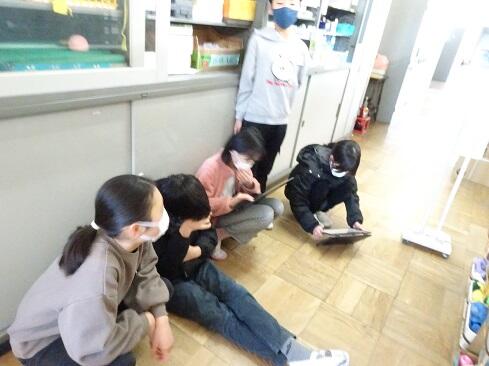 今回は地震による火災発生の訓練で,出火場所を給食室に想定し,校庭の南側に避難しました。