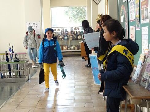 4・5・6年生の代表委員が毎週月曜日の朝,昇降口で「あいさつ運動」を行っています。