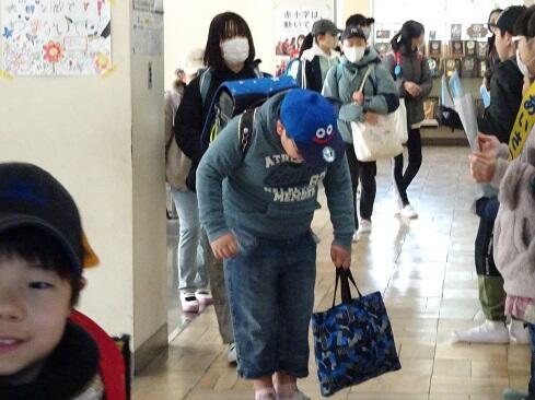 3月18日(月),月曜日は児童会計画委員による「さわやかあいさつデー」ですが,そんな中,卒業式を明日に控え,6年生のランドセル姿が最終回を迎えました。小学1年生の入学の際には,毎晩背負ってみたり,何度も開け閉めをしてみたりしたことが懐かしく思い出されるのではないでしょうか。そして,もう卒業。ランドセルも6年間みなさんと一緒によく頑張りました。