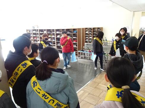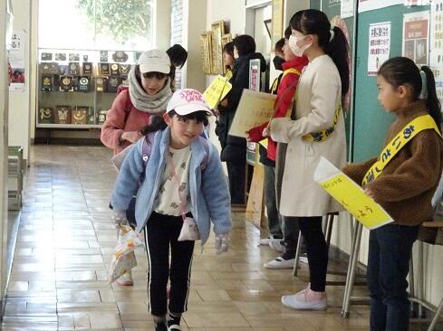 全校児童に参加してもらうため,縦割り班の干支ごとに「あいさつ運動」を行います。